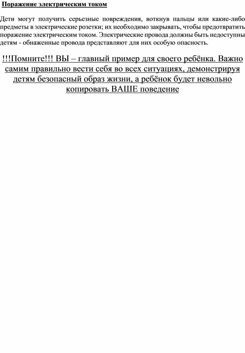 Дети могут получить серьезные повреждения, воткнув пальцы или какие-либо предметы в электрические розетки; их необходимо закрывать, чтобы предотвратить поражение электрическим током. Электрические провода должны быть недоступны детям - обнаженные провода представляют для них особую опасность.