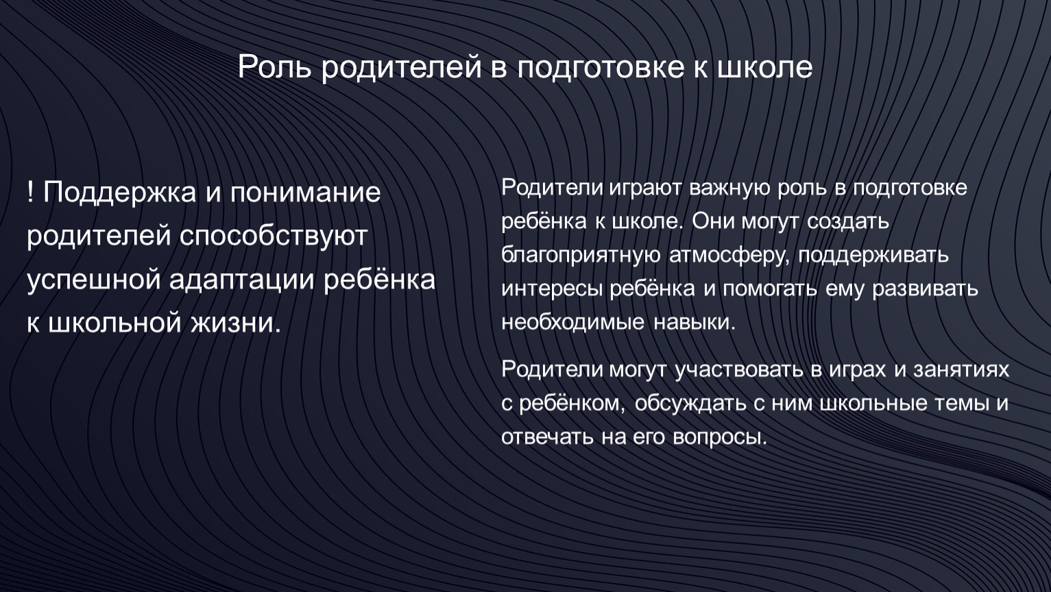 ! Поддержка и понимание родителей способствуют успешной адаптации ребёнка к школьной жизни.