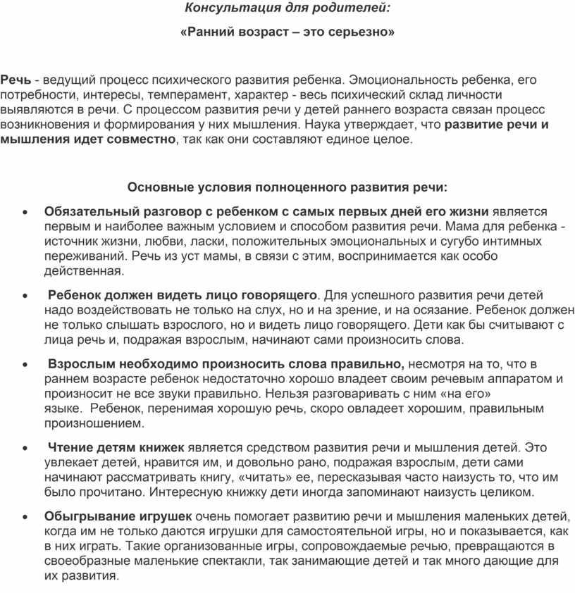 Консультация для родителей: