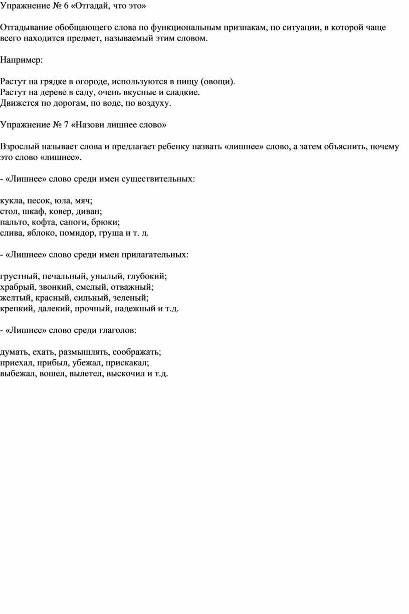 Упражнение № 7 «Назови лишнее слово»