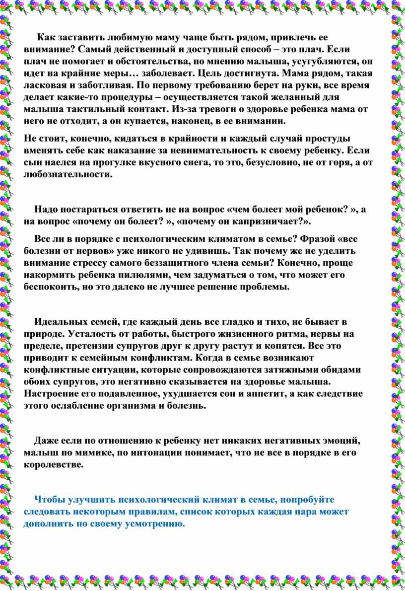 Надо постараться ответить не на вопрос «чем болеет мой ребенок? », а на вопрос «почему он болеет? », «почему он капризничает?».