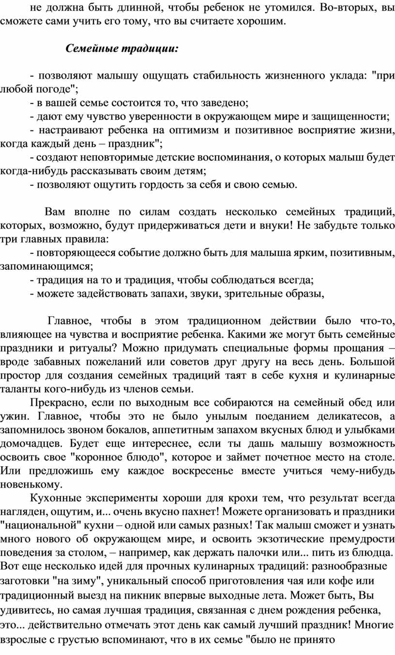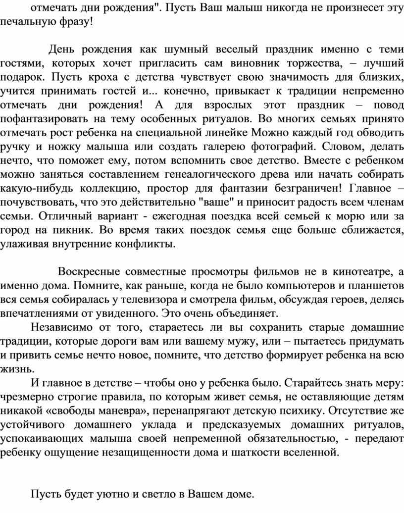 Независимо от того, стараетесь ли вы сохранить старые домашние традиции, которые дороги вам или вашему мужу, или – пытаетесь придумать и привить семье нечто новое, помните, что детство формирует ребенка на всю жизнь.