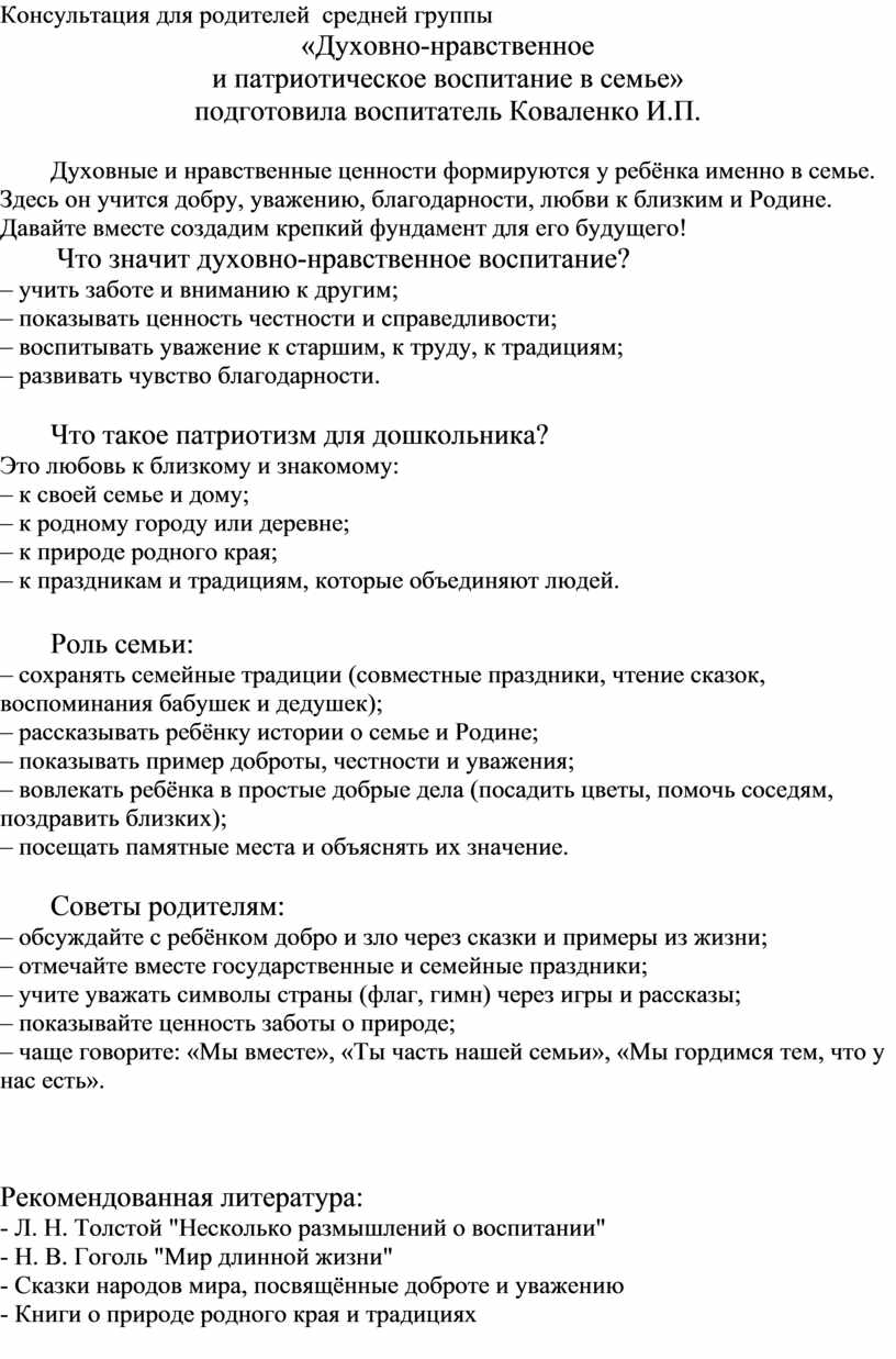 Важно помнить: духовно-нравственное и патриотическое воспитание — это не лекции, а повседневная жизнь. Каждый день ваш пример помогает ребёнку расти добрым, ответственным и любящим свою Родину.