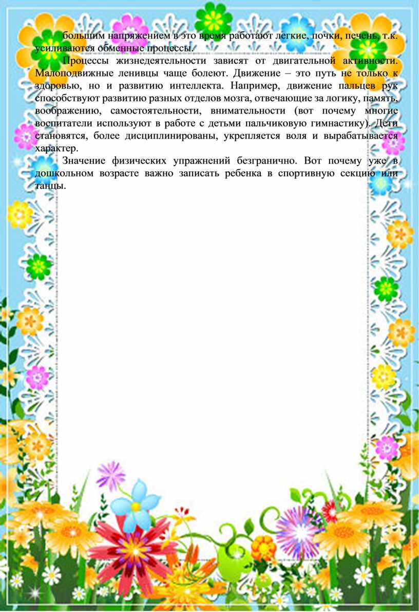 двигательной активности. Малоподвижные ленивцы чаще болеют. Движение – это путь