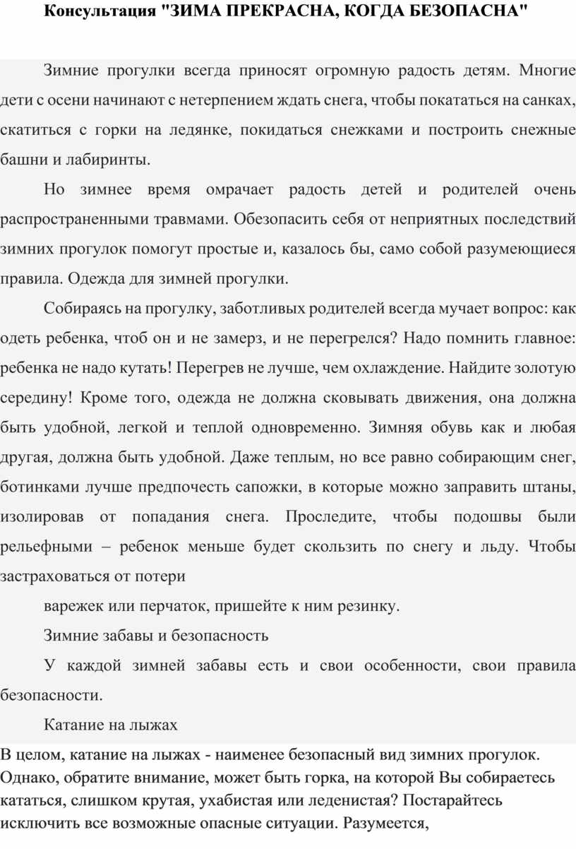 Консультация "ЗИМА ПРЕКРАСНА, КОГДА БЕЗОПАСНА"