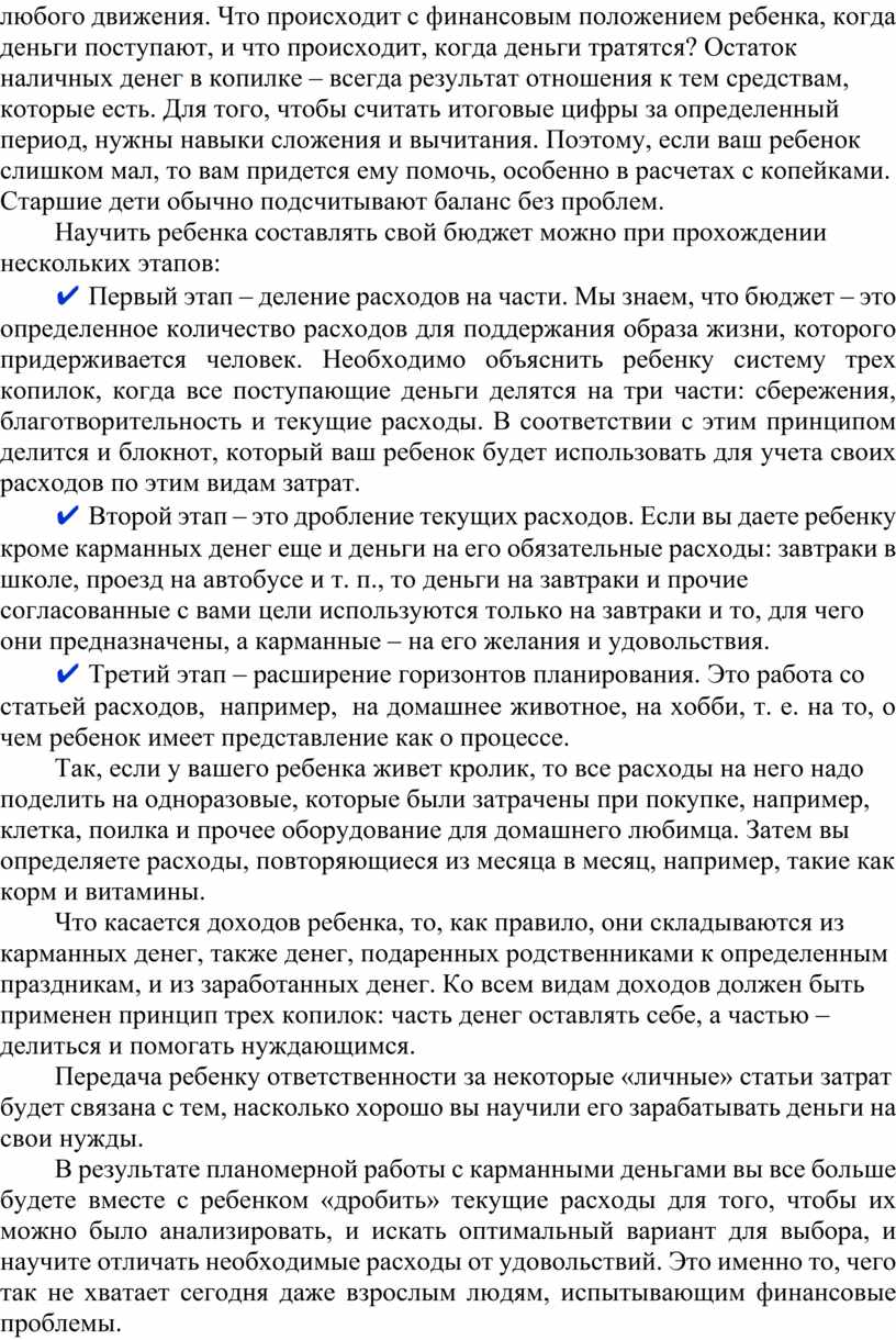 статьей расходов, например, на домашнее животное, на хобби, т. е. на то, о чем ребенок имеет представление как о процессе.