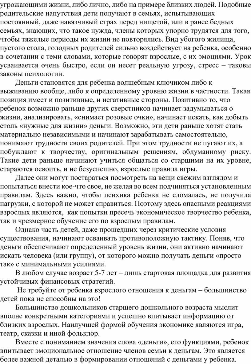 столь «нужные для жизни» деньги. Возможно, эти дети раньше хотят стать
