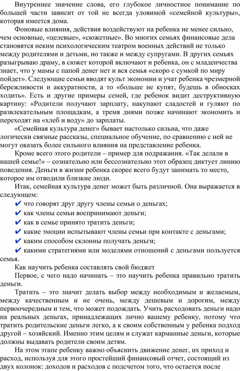 ✔ какими стратегиями или моделями отношений с деньгами пользуется семья.