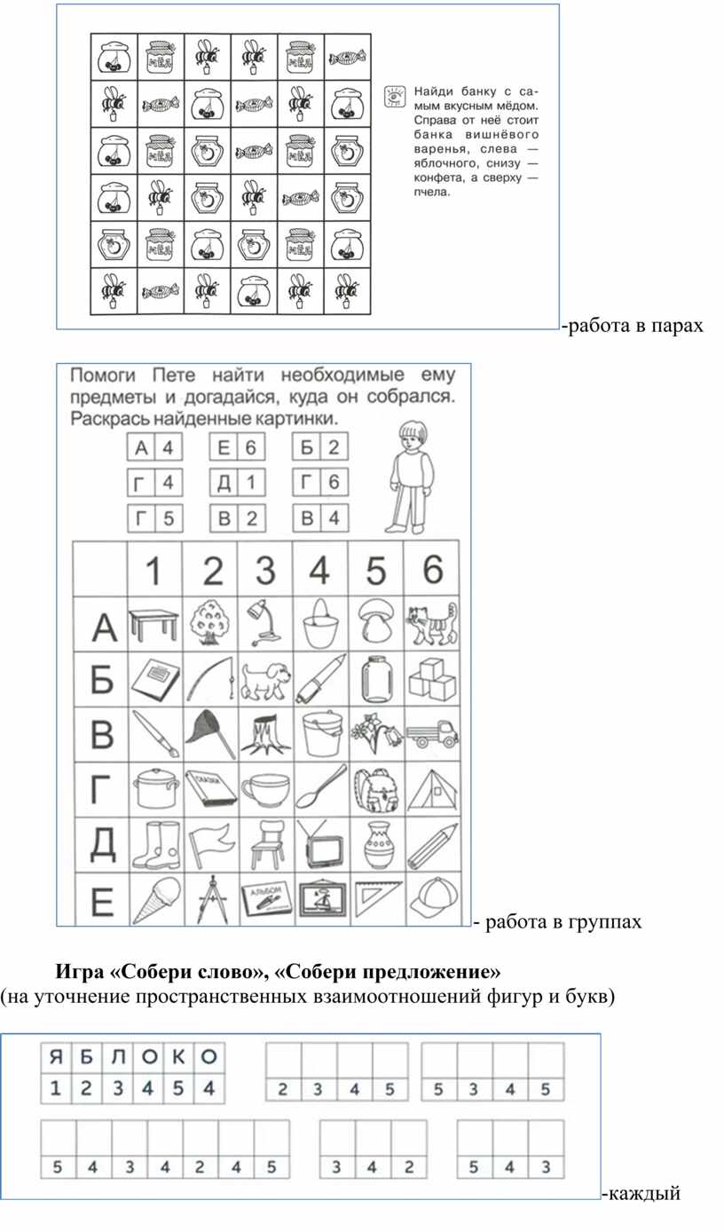 (на уточнение пространственных взаимоотношений фигур и букв)