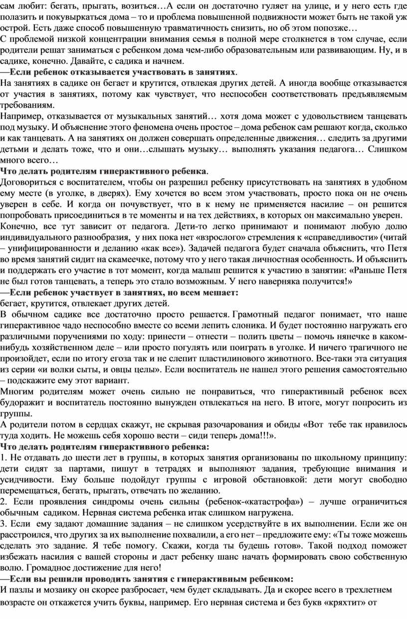 Консультация психолога на тему «Гиперподвижный ребенок. Что делать?»