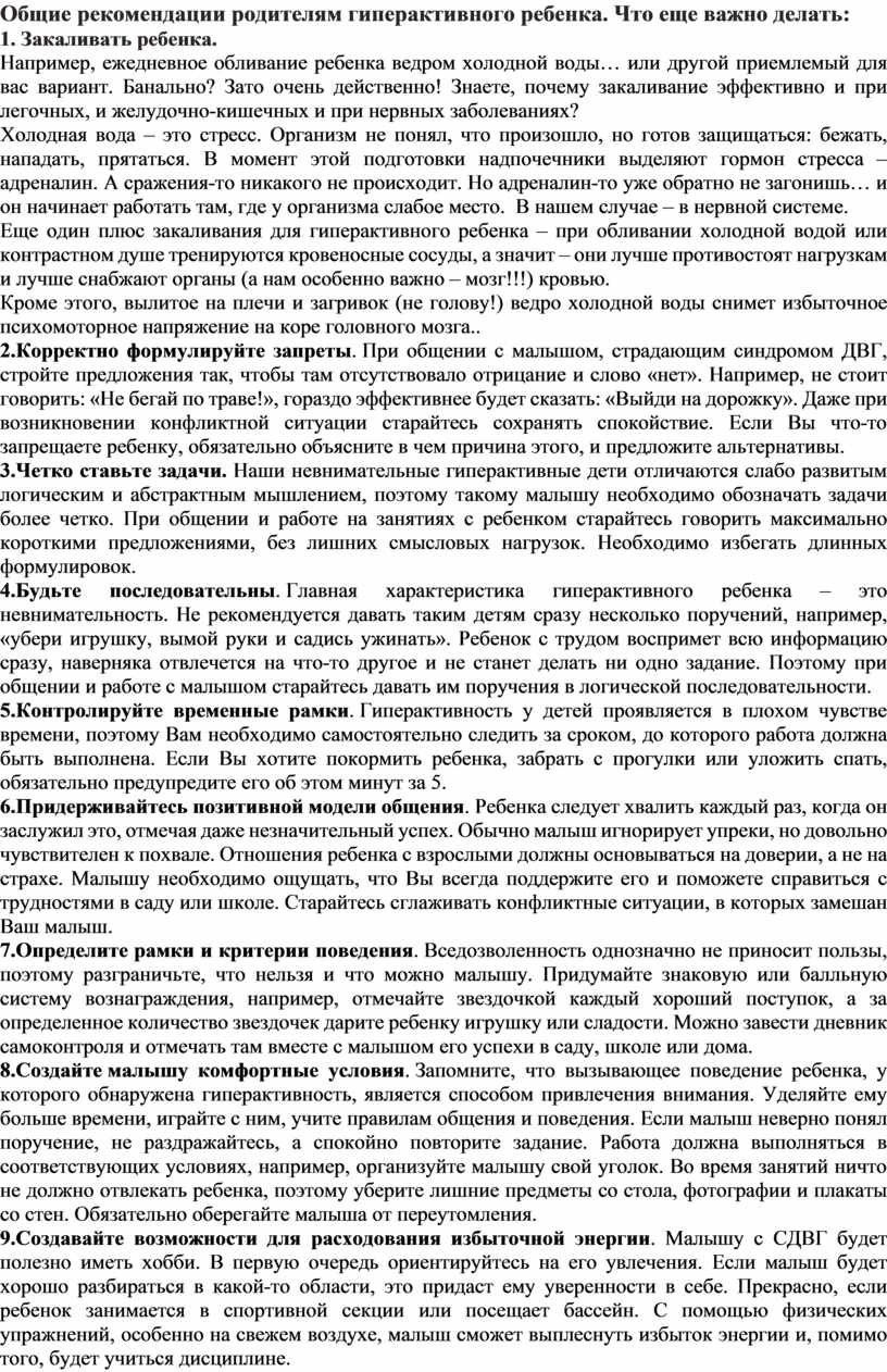 Общие рекомендации родителям гиперактивного ребенка. Что еще важно делать: