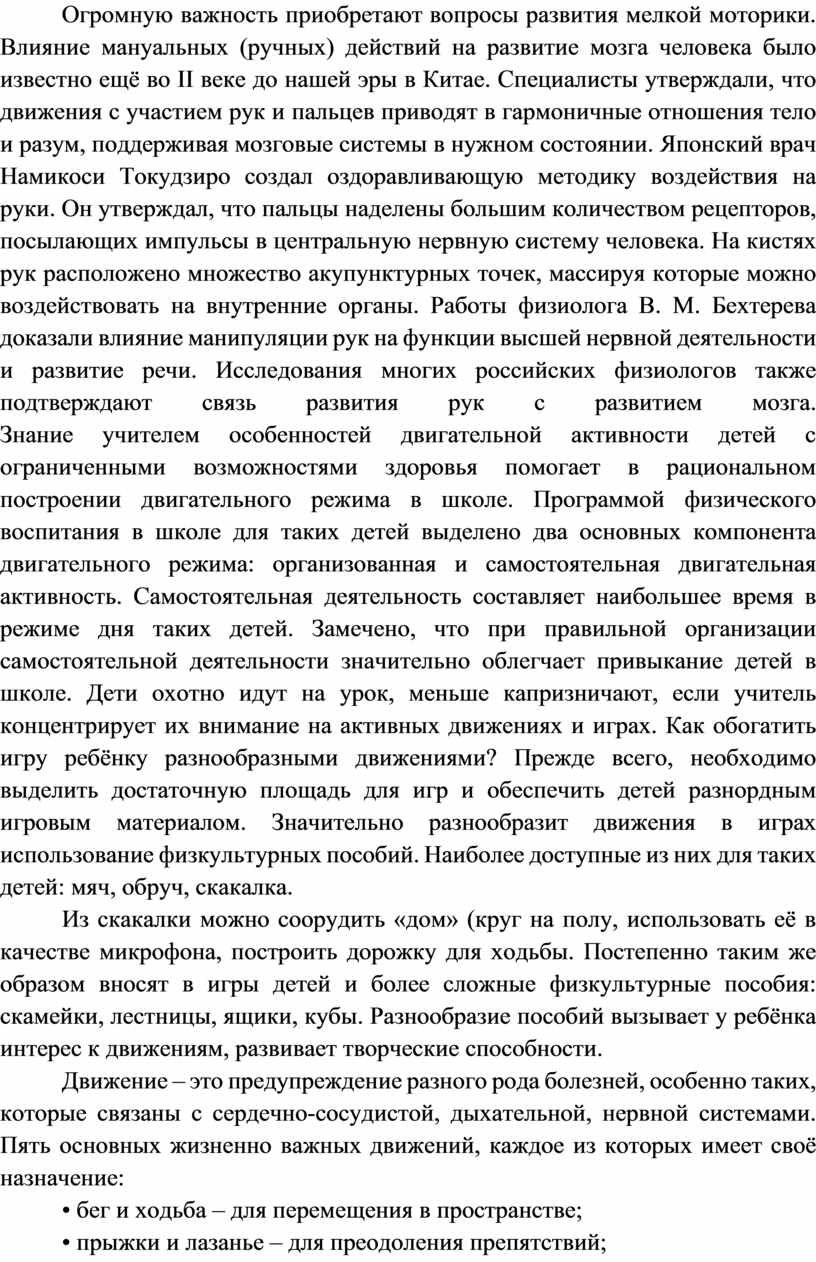 ограниченными возможностями здоровья. Только через движения мы их многому можем