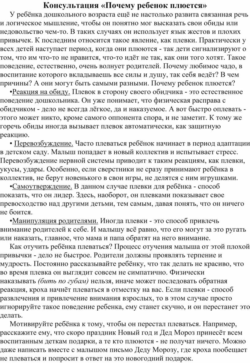 У ребёнка дошкольного возраста ещё не настолько развита связанная речь и логическое мышление, чтобы он понятно мог высказать свои обиды или недовольство чем-то. В таких случаях он использует язык жестов и плохих привычек. К последним относится такое явление, как плевки. Практически у всех детей наступает период, когда они плюются - так дети сигнализируют о том, что им что-то не нравится, что-то идёт не так, как они того хотят. Такое поведение, естественно, очень волнует родителей. Почему любимое чадо, в воспитание которого вкладываешь все силы и душу, так себя ведёт? В чем причины? А они могут быть самыми разными. Почему ребенок плюется?