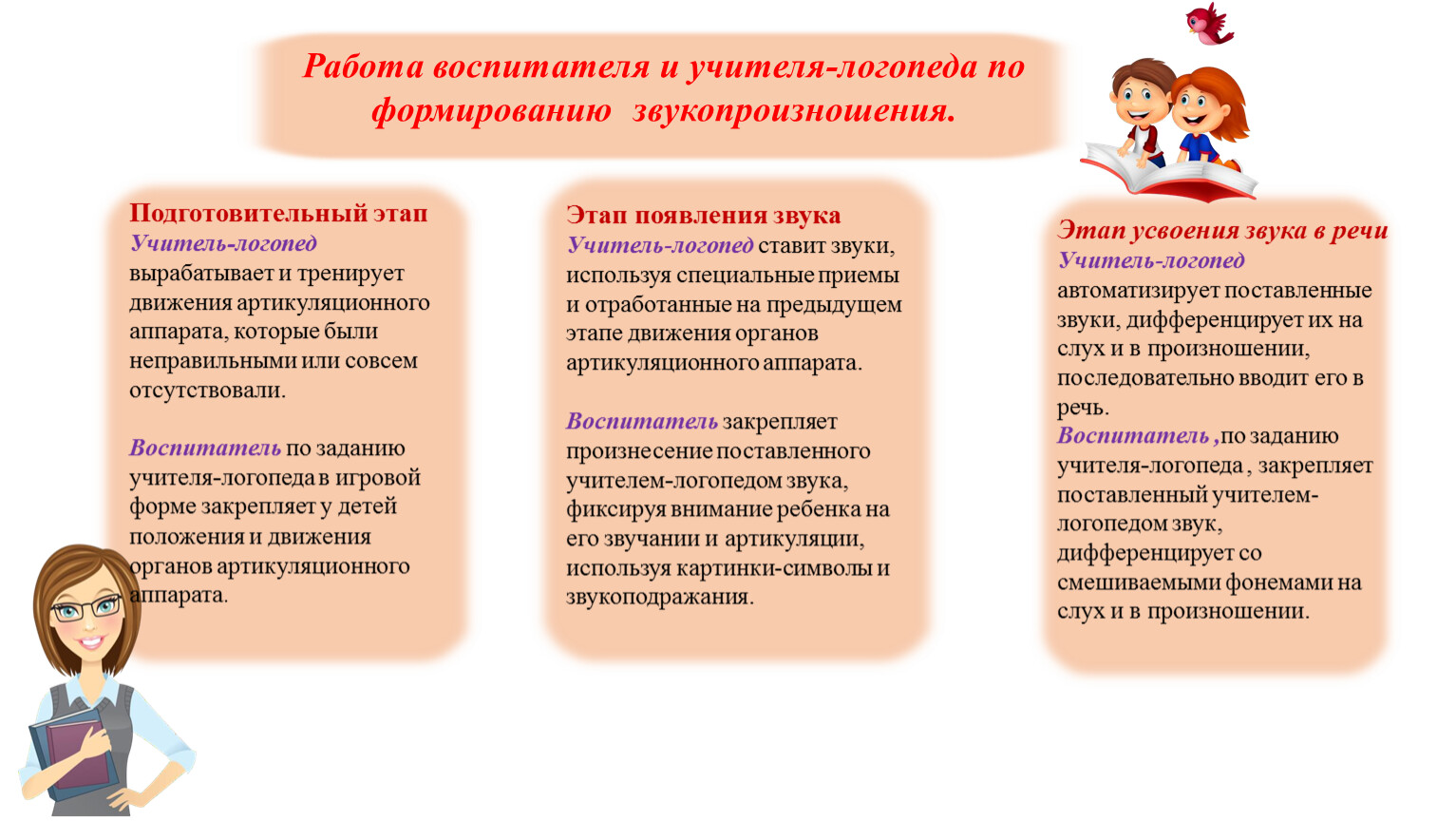 Работа воспитателя и учителя-логопеда по формированию  звукопроизношения.