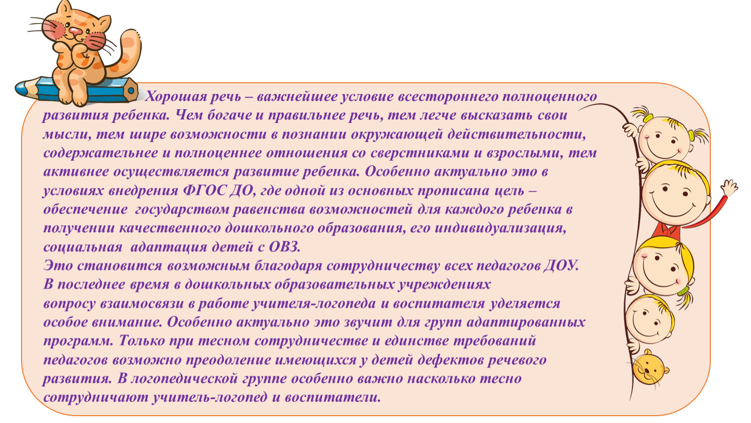 Взаимодействие учителя-логопеда и воспитателя по формированию правильного звукопроизношения у детей с ТНР