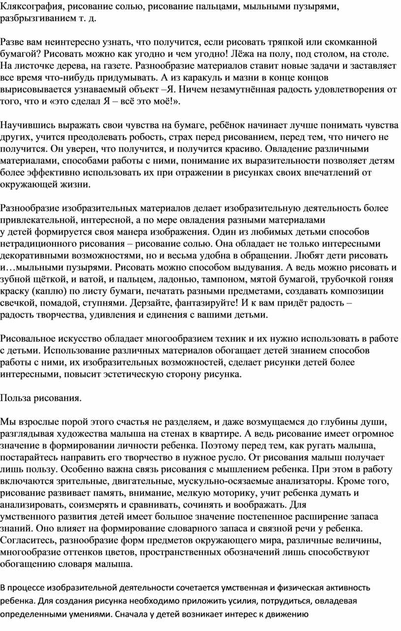 Кляксография, рисование солью, рисование пальцами, мыльными пузырями, разбрызгиванием т. д.