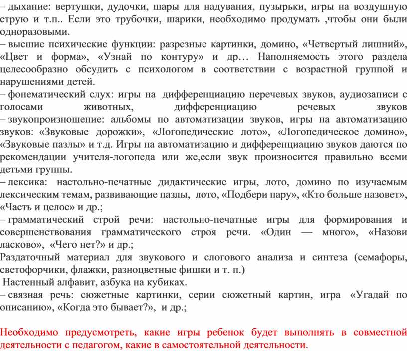 Необходимо предусмотреть, какие игры ребенок будет выполнять в совместной деятельности с педагогом, какие в самостоятельной деятельности.