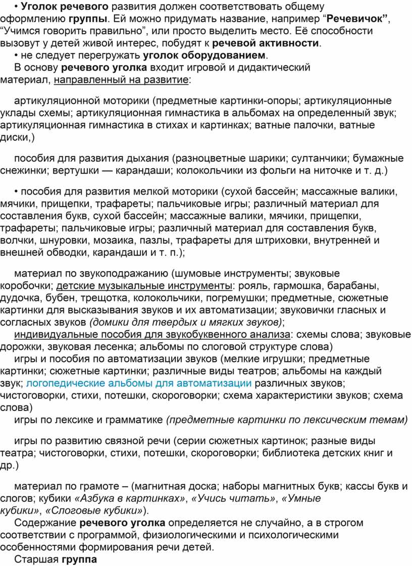 составляющих в организации среды для детей с ОНР является - речевой уголок. Это