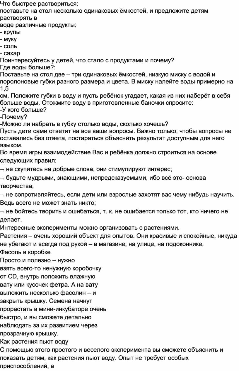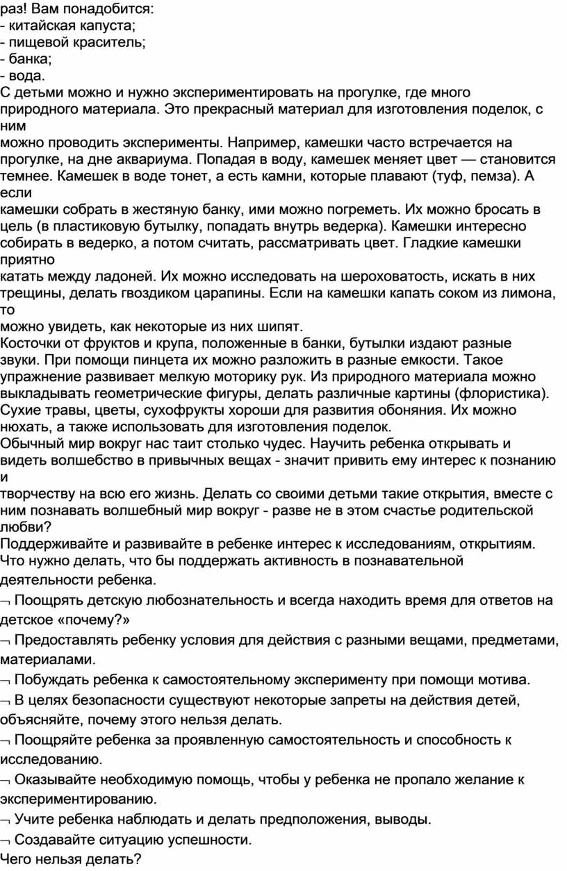 самостоятельно, так и с помощью взрослых. Экспериментирование пронизывает