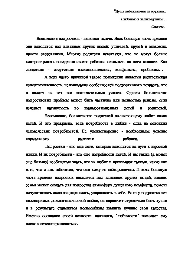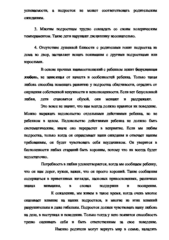 разрушительны и даже гибельны. Подросток должен чувствовать нашу любовь