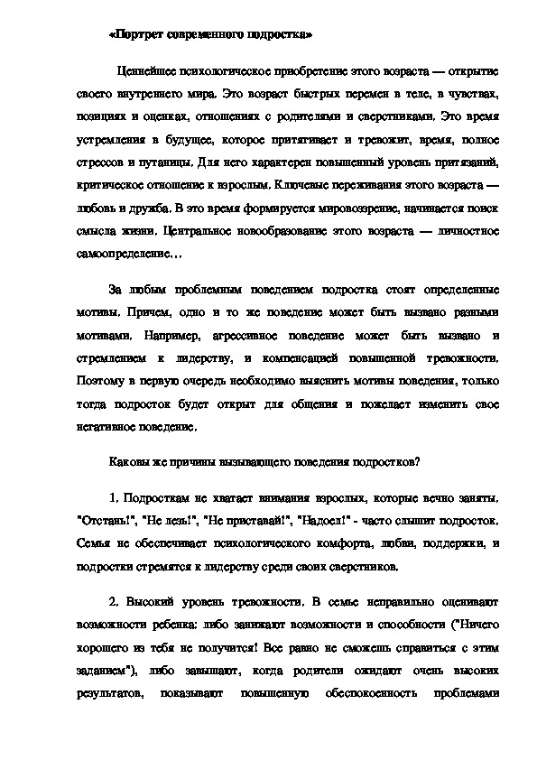 психологически развиваться.«Портрет современного подростка»