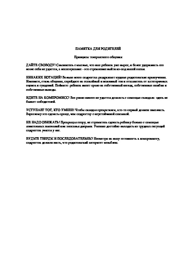 - советы родителям "Принципы толерантного общения".