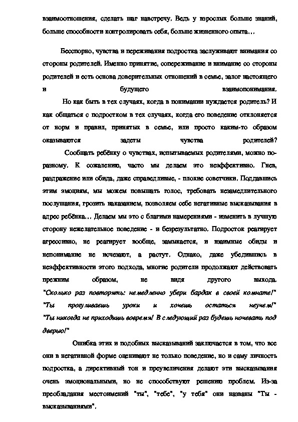 подростка, а директивный тон и преувеличения делают эти высказывания