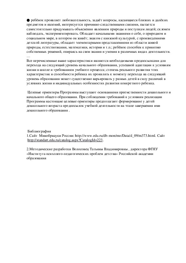 Целевые ориентиры Программы выступают основаниями преемственности дошкольного и