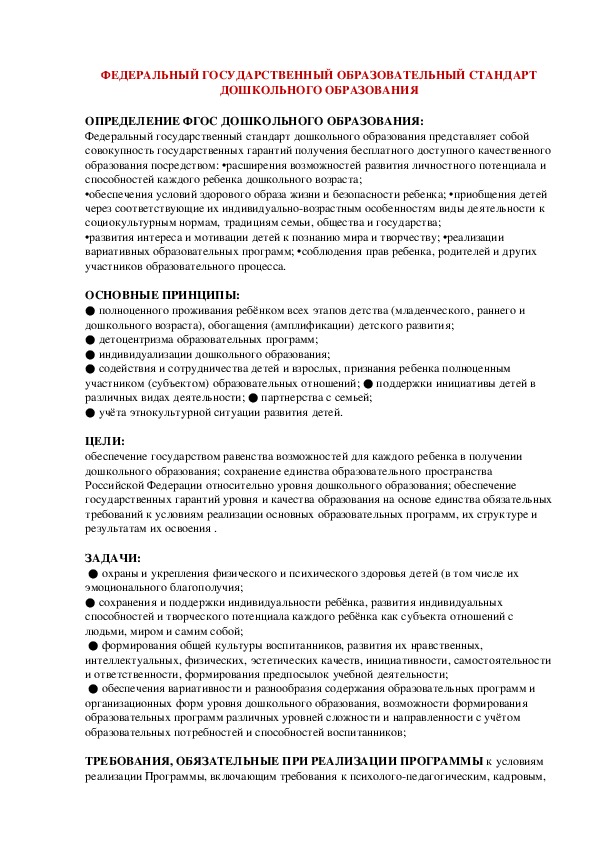 Федеральный государственный стандарт дошкольного образования представляет собой