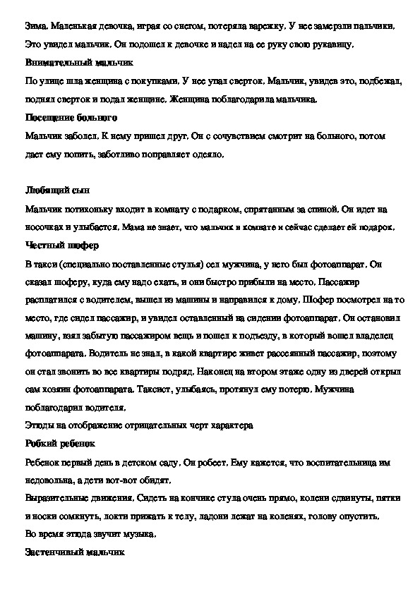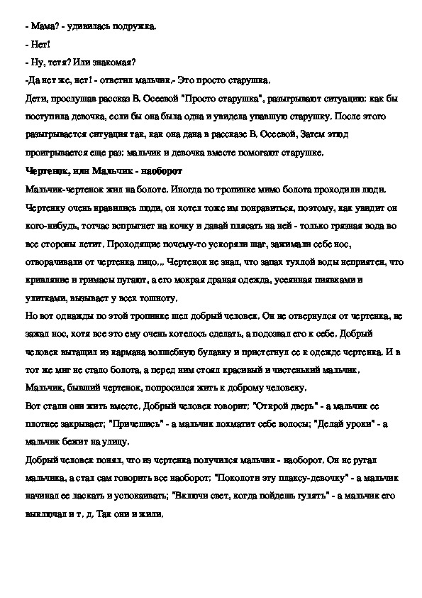 разыгрывается ситуация так, как она дана в рассказе В. Осеевой, Затем этюд