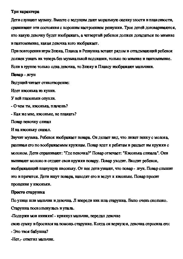 Если в группе только одна девочка, то Злюку и Плаксу изображают мальчики.
