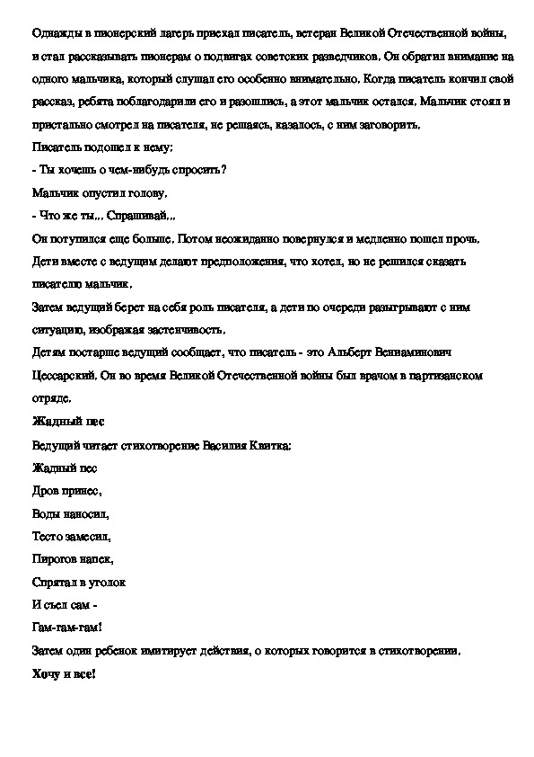 оценку поведению обоих ребят, распределяют роли. Ведущий снова читает