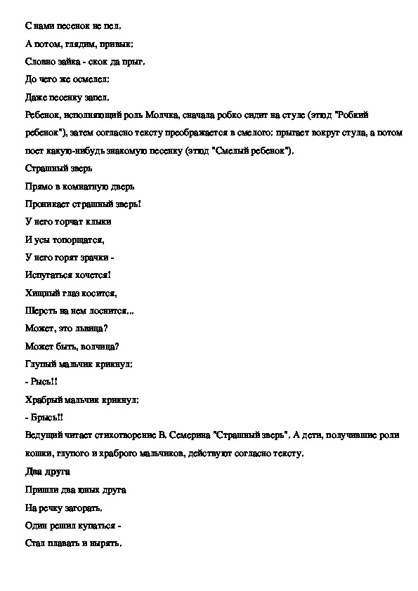Ведущий читает стихотворение В. Семерина "Страшный зверь". А дети, получившие роли