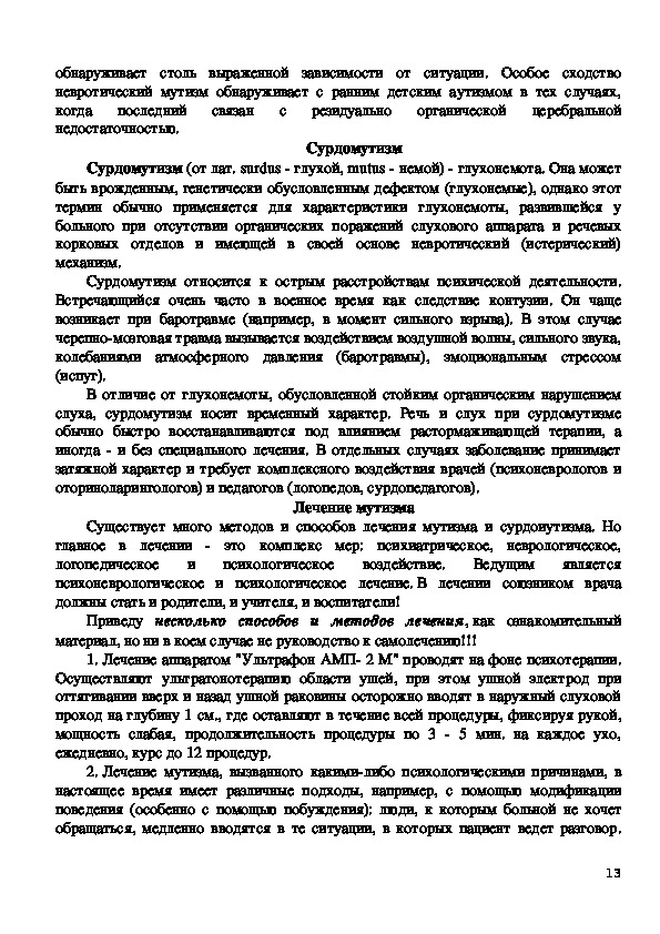 1абсолютный" мутизм это практически то, что позднее стало рассматриваться как