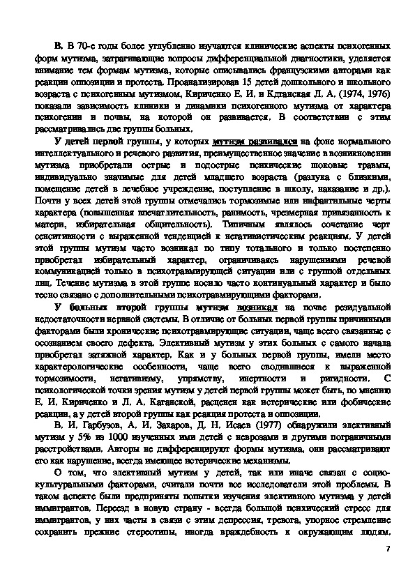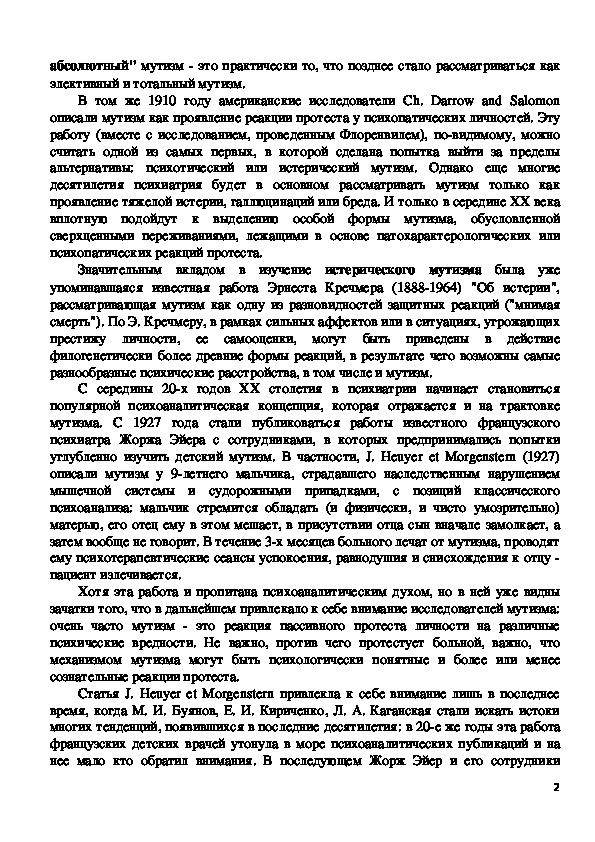 углубленно изучить детский мутизм. В частности, J. Heuyer et Morgenstern (1927)
