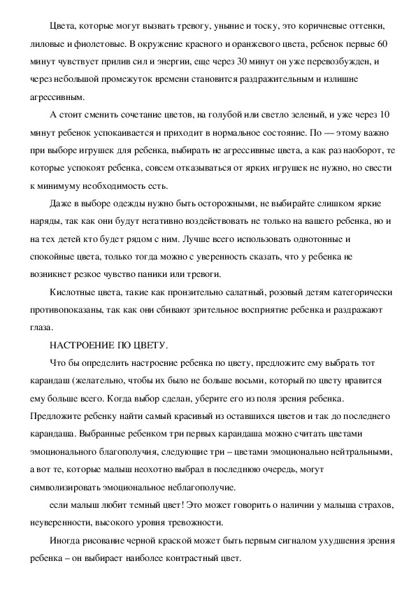 психоэмоциональное возбуждению ребенка. Лучше использовать пастельные (нежно