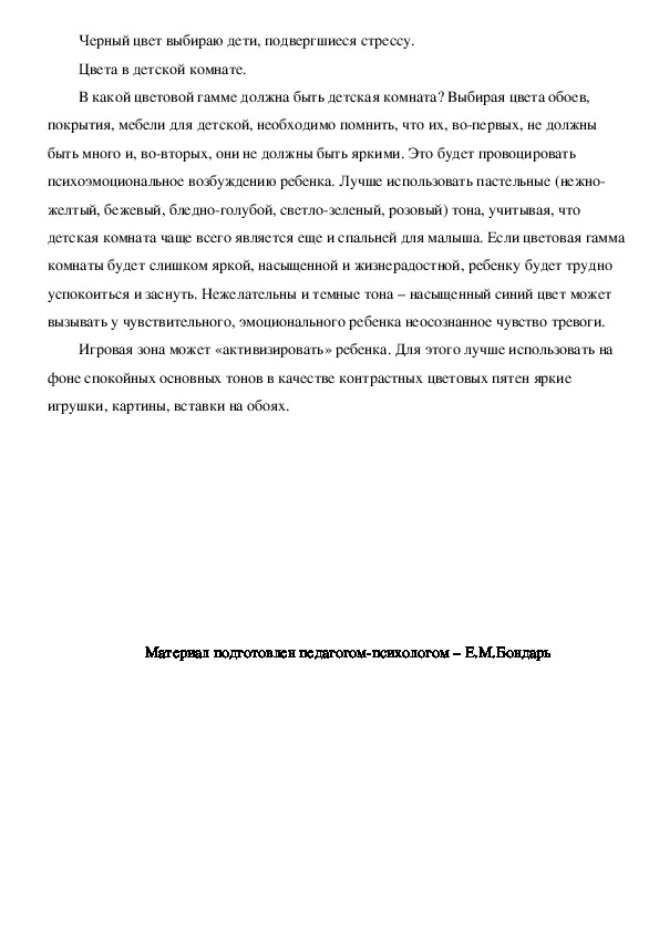 Материал подготовлен педагогомпсихологом – Е.М.Бондарь