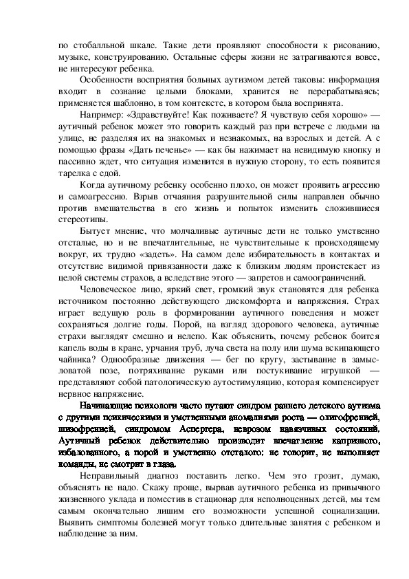 сохраняться долгие годы. Порой, на взгляд здорового человека, аутичные