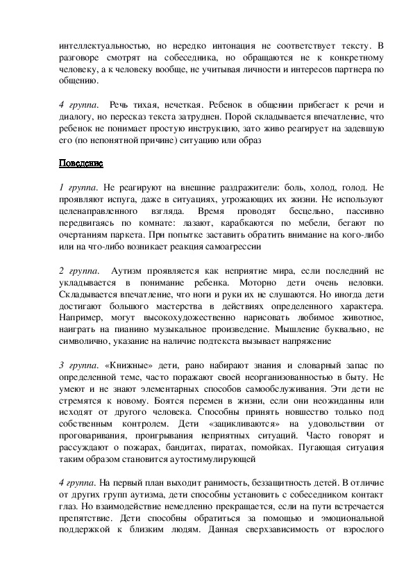 1 группа. Полная отрешенность от происходящего. Данная группа аутизма