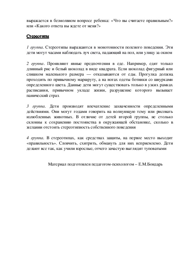 Материал подготовлен педагогомпсихологом – Е.М.Бондарь