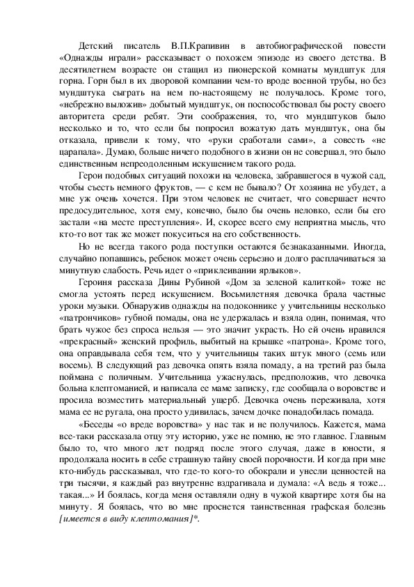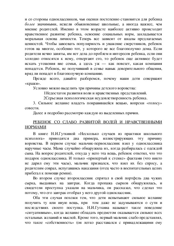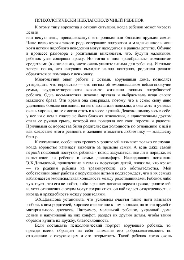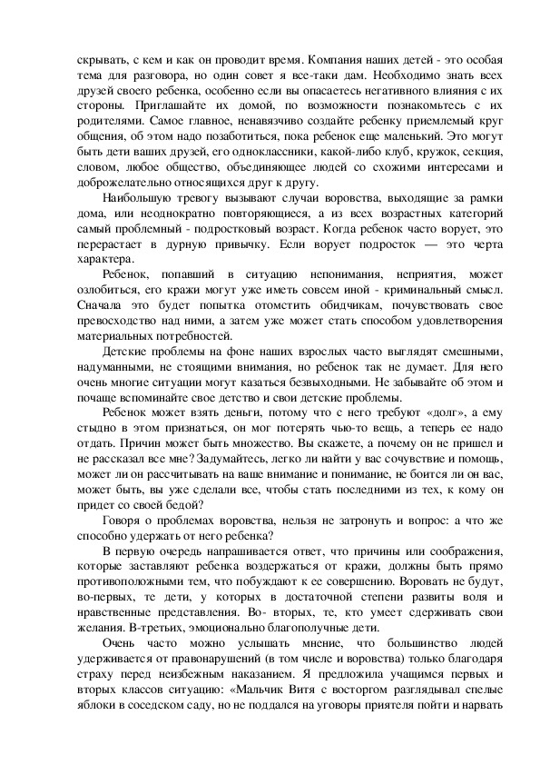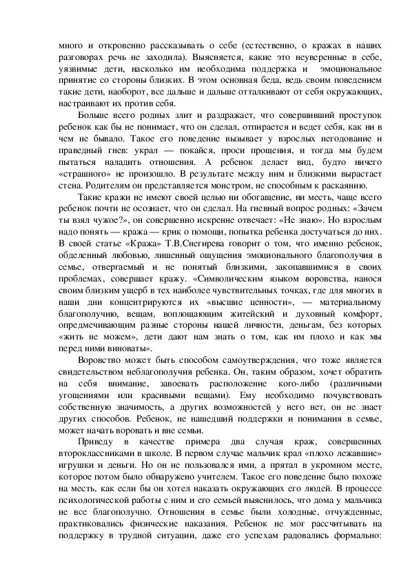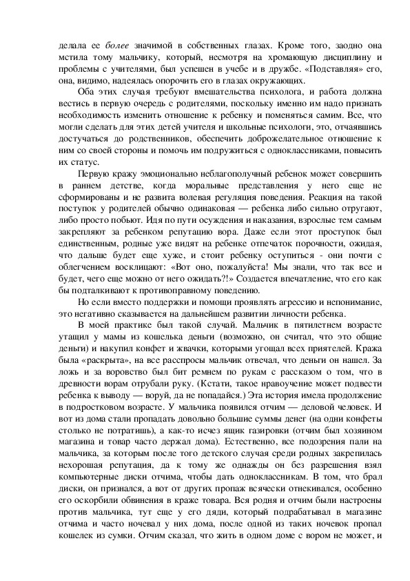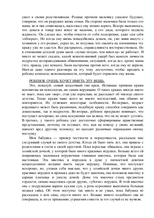 связанный с проблемой детского воровства. Воровство — это такое явление
