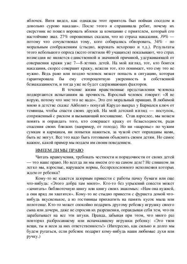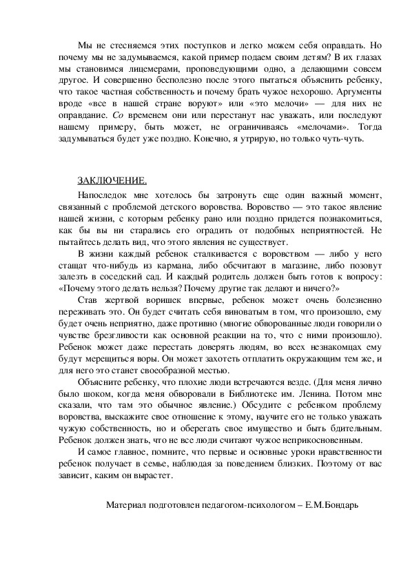 которые заставляют ребенка воздержаться от кражи, должны быть прямо