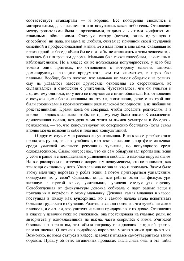 информации о такого рода сложностях в поведении благополучных детей, а не