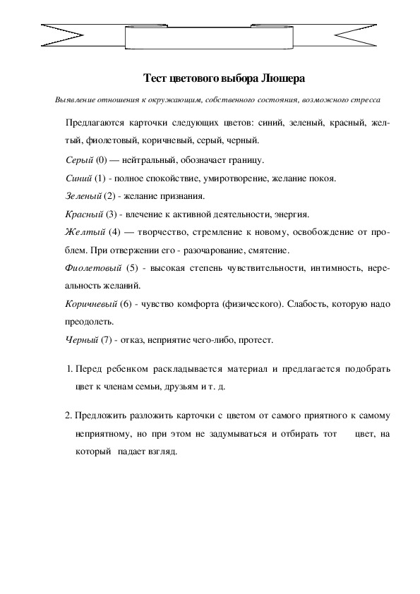 2. Предложить разложить карточки с цветом от самого приятного к самому