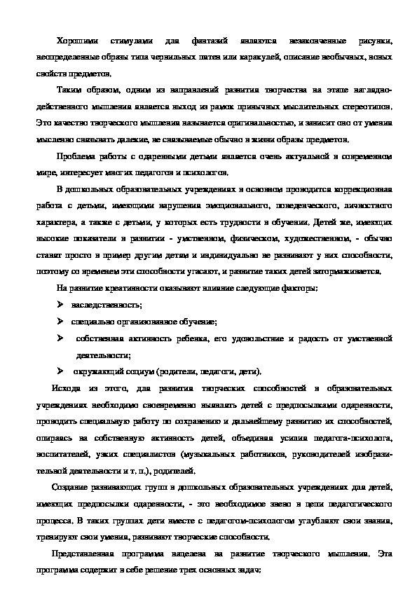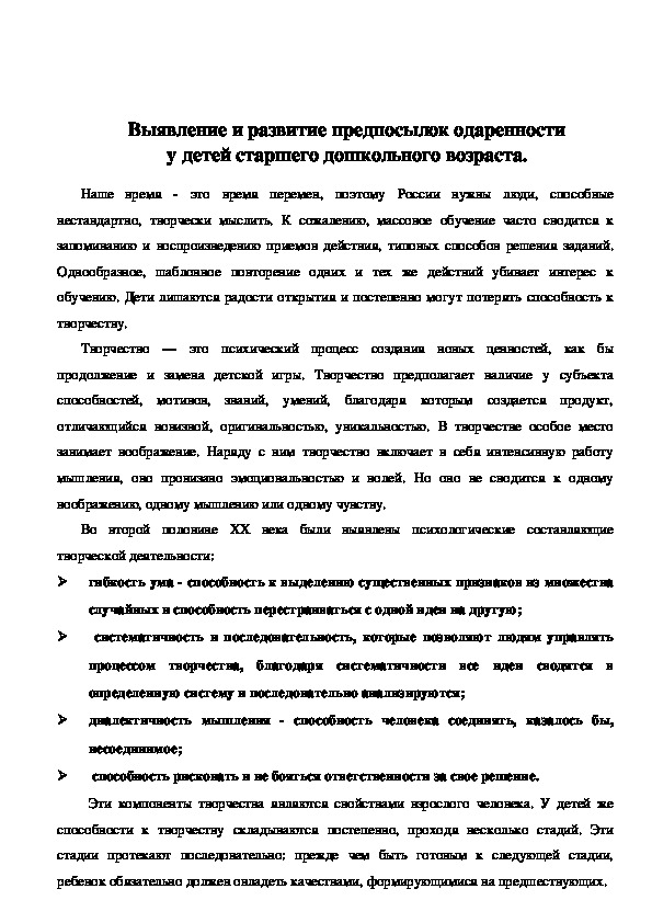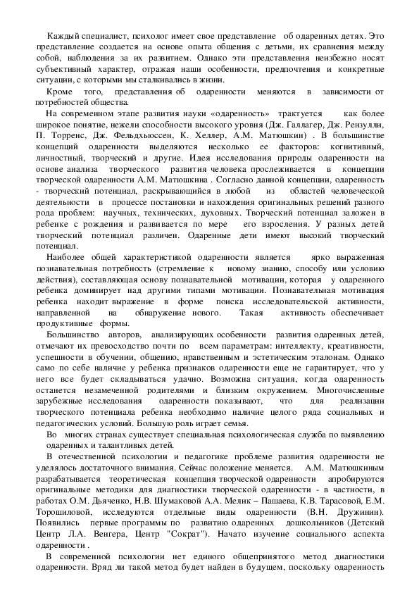 творческой одаренности А.М. Матюшкина . Согласно данной концепции, одаренность