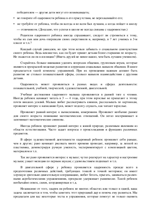 • не говорите об одаренности ребенка в его присутствии, не перехваливайте его;
