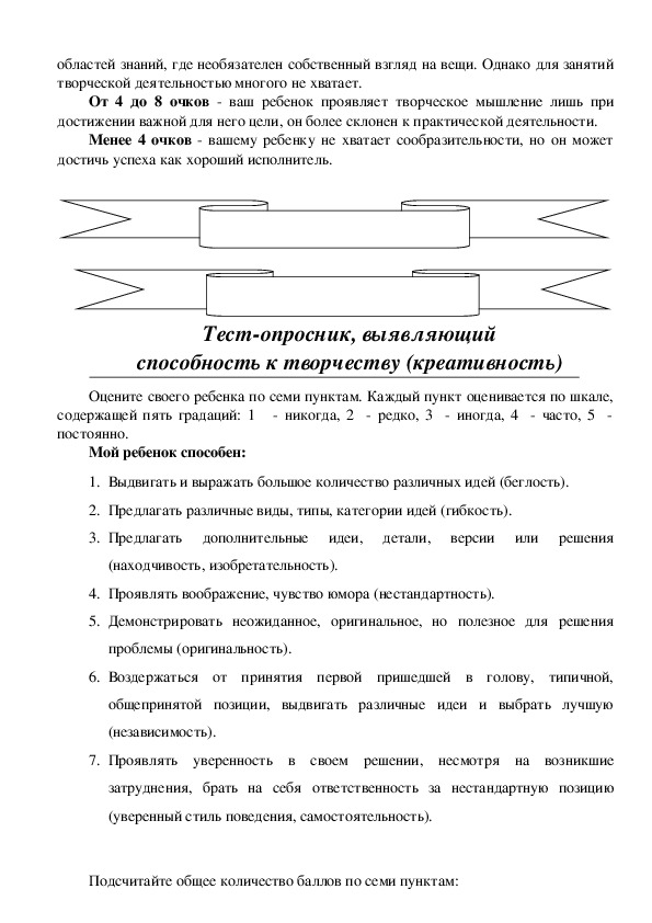 предлагаем для вас некоторые тесты и упражнения, которые помогут не только оценитьуровень развития творческих способностей, но и подсказать пути их совершенствования.