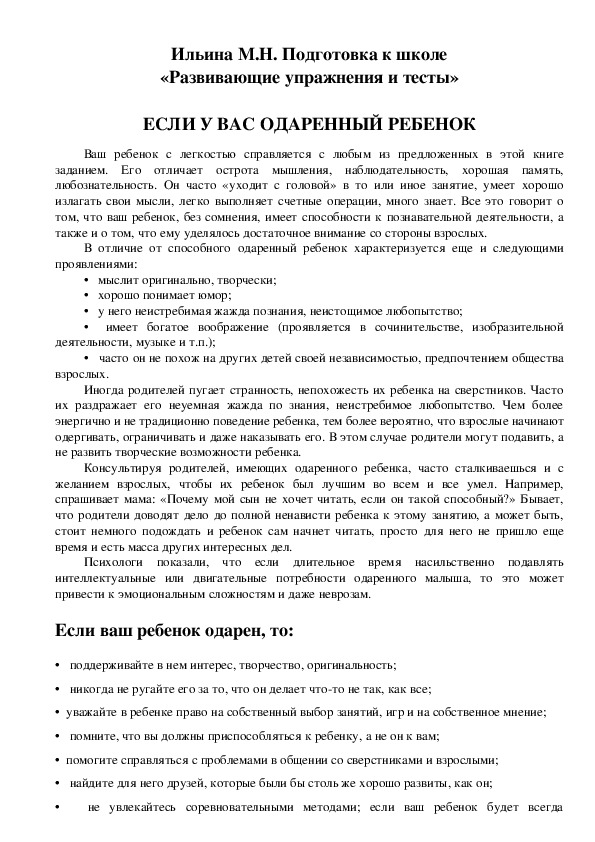 ЕСЛИ У ВАС ОДАРЕННЫЙ РЕБЕНОК