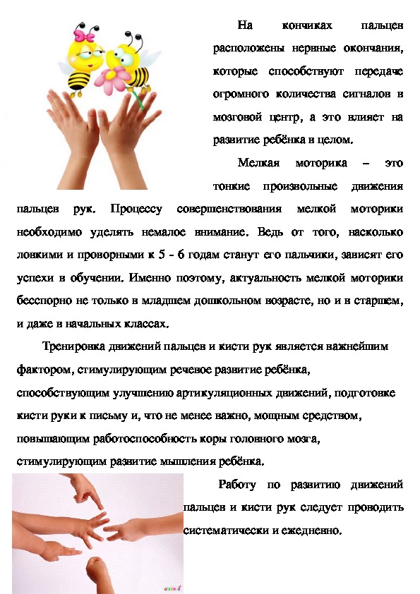 успехи в обучении. Именно поэтому, актуальность мелкой моторики