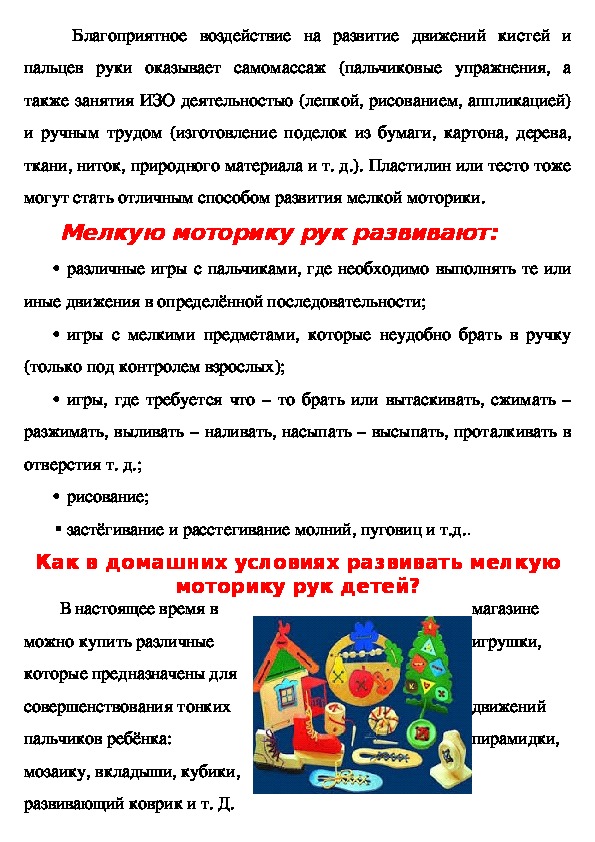 Хорошо на развитие мелкой моторики руки ребёнка влияют игры с